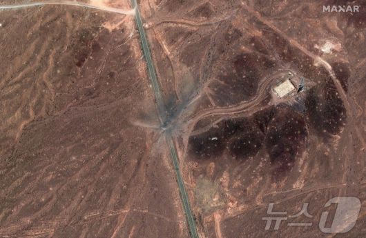 이란 쿰 지역 북동부에 위치한 이란의 포르도 핵 시설 진입로에 이스라엘의 공습으로 생긴 구멍이 포착됐다. 2025.06.24 ⓒ AFP=뉴스1 ⓒ News1 정지윤 기자 |