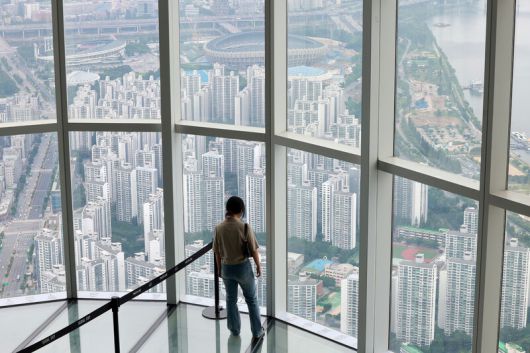 정부가 6억원 이상 주택담보대출을 금지하는 초고강도 대출 규제를 시행한 지난 29일 서울 송파구 롯데월드타워 전망대 서울스카이에서 바라본 서울 시내 아파트 단지 모습. 연합뉴스 |