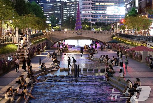 서울에 올해 처음으로 열대야가 기록된 30일 서울 청계천에서 시민들이 더위를 식히고 있다. 열대야는 밤 사이(전날 오후 6시 1분부터 다음날 오전 9시까지) 기온이 25도 이상으로 유지되는 현상이다. 2025.6.30/뉴스1 ⓒ News1 박지혜 기자 |