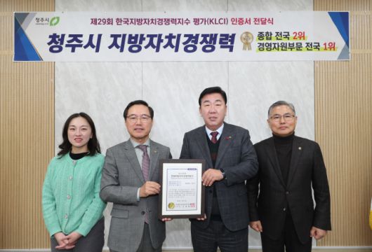 한국지방자치경쟁력지수 상위권 기관 인증서 전달식. [사진=청주시] 2025.07.01 baek3413@newspim.com