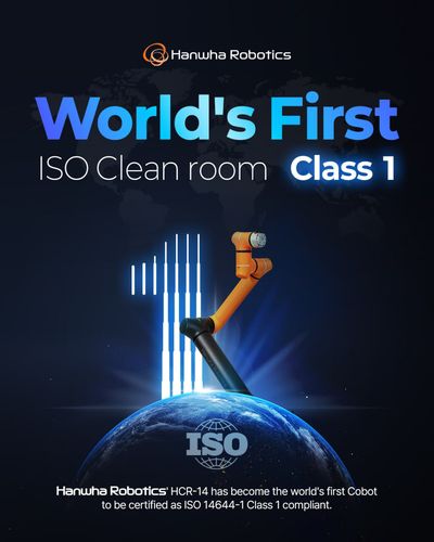한화로보틱스가 받은 등급인 클래스1은 공기 1㎥ 당 지름 0.1㎛ 크기의 오염 입자 10개 이하만 허용되는 가장 엄격한 청정도 등급이다. 클래스1 인증을 받은 협동 로봇은 작동 중 오염 물질이 거의 발생하지 않는다.