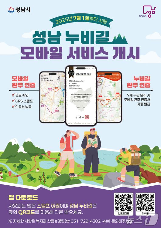 시 관계자는 "내 손 안의 휴대폰으로 누비길을 안내받을 수 있고 인증도장이 찍히는 재미까지 더해 종주 길에 나서는 이들의 성취감을 높이게 될 것"이라며 "즐겁고 스마트한 성남의 등반길을 널리 알리는 효과도 기대된다"고 말했다.