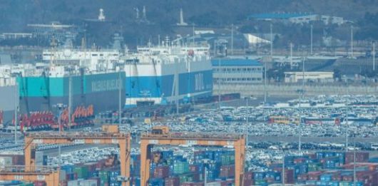 경기 평택항에 수출용 자동차가 선적 대기하고 있다. |