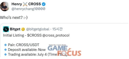 넥써쓰의 블록체인 게임 토큰 ‘크로쓰(CROSS)’가 글로벌 5위권 암호화폐 거래소 ‘비트겟(Bitget)’에 상장된다.