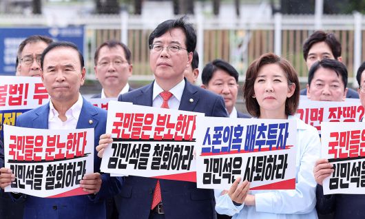 국민의힘 송언석 원내대표가 김민석 국무총리 후보자의 지명철회를 촉구하며 “유례없는 집권여당의 전면전 도발에 기꺼이 응할 준비가 돼 있다”고 말했다.