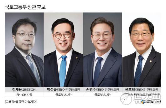 후보자로는 맹성규, 손명수, 윤후덕 등 더불어민주당 국회의원을 중심으로 한 정치권 인사들이 거론된다. 국토부 관료 출신인 맹 의원과 현재 국토교통위원장을 맡고 있다. 문재인 정부 시절 국토부 2차관을 지냈다. 손 의원 역시 국토부 관료 출신인데다 지난 2020~2021년 국토부 2차관에 이름을 올렸다. 윤 의원은 대선 캠프에서 경제·민생 공약을 총괄하며 이재명 대통령과 호흡을 맞춰왔다.