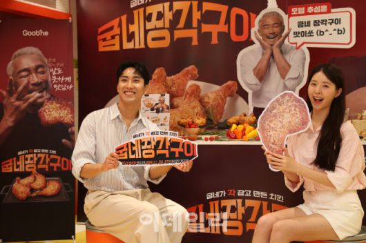 [이데일리 김태형 기자] 굽네치킨 모델들이 1일 ‘굽네 장각구이’ 출시행사에서 신제품을 선보이고 있다. ‘굽네 장각구이’는 오븐구이에 취적화된 프리미엄 치킨으로 닭다리살과 엉치살로 이루어진 장각을 오븐에 구워 기름기는 줄이고, 촉촉한 식감과 담백하고 깔끔한 맛을 살린 것이 특징이다. 한편, 굽네치킨을 운영하는 지앤푸드는 출시에 맞춰 격투기 추성훈 선수를 모델로 발탁해 광고 캠페인을 진행한다.