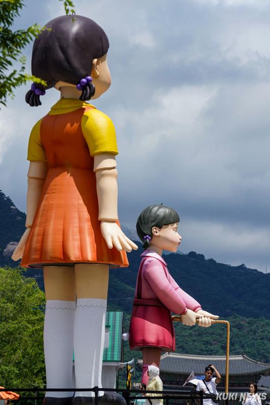 서울시는 지난달 28일부터 오는 6일까지 광화문광장에서 넷플릭스 오리지널 시리즈 오징어게임을 활용한 팝업 행사를 열고 있다. 서울시와 넷플릭스는 오징어게임을 계기로 서울을 찾은 관광객이 도심 속 K콘텐츠 촬영지를 방문할 수 있도록 이벤트존을 마련했다.