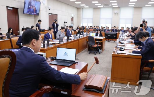 신정훈 국회 행정안전위원장이 30일 서울 여의도 국회에서 열린 행정안전위원회 전체회의에 서 의사봉을 두드리고 있다. 2025.6.30/뉴스1 ⓒ News1 신웅수 기자 |