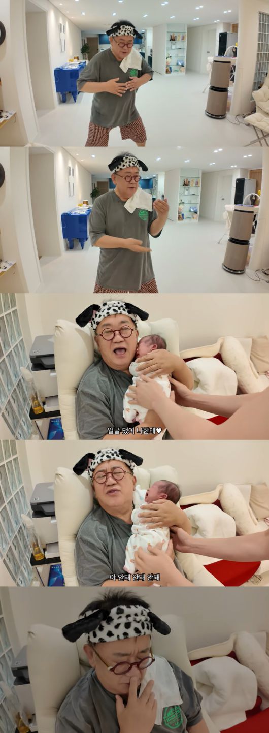 뒤이어 손녀를 실제로 품에 안은 이용식은 "얼굴 댔어, 나한테"라며 감격했고, 손녀가 울기 시작하자 "안 된다. 가져가라. 이건 정말 안 된다"고 말했다.