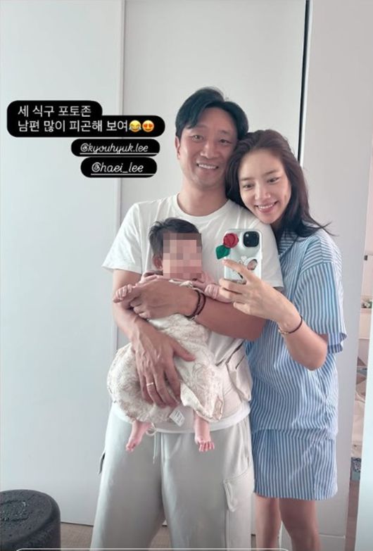 1일 손담비는 남편 이규혁, 딸 해이와 함께 세 식구의 단체사진을 게재했다. 그는 "세 식구 포토존, 남편 많이 피곤해보여"라며 이모티콘을 남겼다.