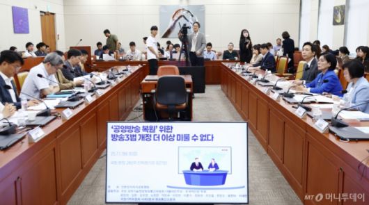 국회 과학기술방송통신위원회 소속 민주당 의원들은 1일 오전 서울 여의도 국회 본관 과방위 전체회의장에서 '공영방송 복원을 위한 방송3법 개정 더 이상 미룰 수 없다'는 주제로 긴급토론회를 열고 이러한 내용의 '방송3법 통합 대안'을 신속히 추진하겠다는 입장을 밝혔다.