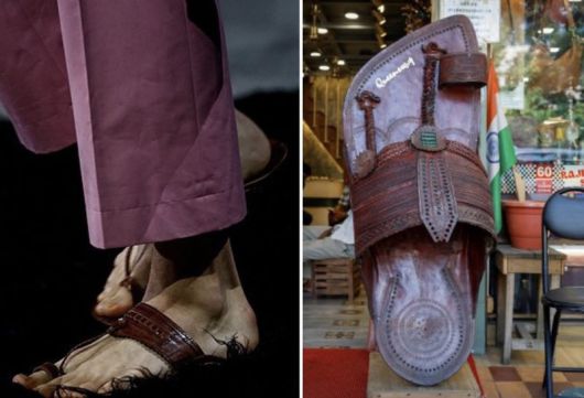 이를 본 인도인들은 T자 스트랩 샌들이 인도의 전통 수제 가죽 신발인 '콜라푸리 차팔'과 흡사하다는 의혹을 제기했다. 콜라푸리 차팔은 인도 서부 마하라슈트라의 콜라푸르 지역 이름을 딴 신발로, 밑창이 육포처럼 납작한 수공예 샌들이다.