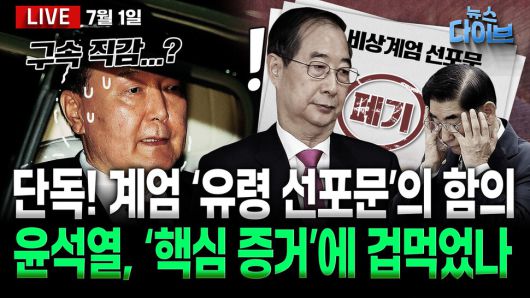 출연: 박영식 시사평론가, 전예현 민주연구원 부원장, 오윤혜 방송인, 신인규 변호사, 권태호 한겨레 논설실장, 진행: 고현준. 특검 수사 대상 심우정 검찰총장! 전격 사의 표명 배경은? 특검의 2차 소환 요구에 불응한 내란수괴 윤석열! ‘핵심 증거’에 겁먹었나? “김건희 현기증 때문에 휠체어 탔다” 국민 복장 터트리는 내란 부부... 신병확보 시급! [단독] 계엄 후 작성된 ‘유령 선포문’ 한덕수 사인 후 폐기 요청...‘불법 계엄 선포 수사’ 어디까지 확대되나? 오늘(7월 1일) 뉴스 다이브 많은 시청바랍니다. 제작: 뉴스영상부
