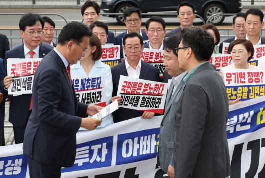 국민의힘은 이날 대통령실에 총리 지명 철회를 촉구하는 항의 서한을 전달했다. 서한에는 “(김 후보자가) 도덕적 측면, 업무 역량 측면에서 총리로서 직무를 수행할 수 없다는 점”이 적혔다고 유상범 원내수석부대표는 전했다.