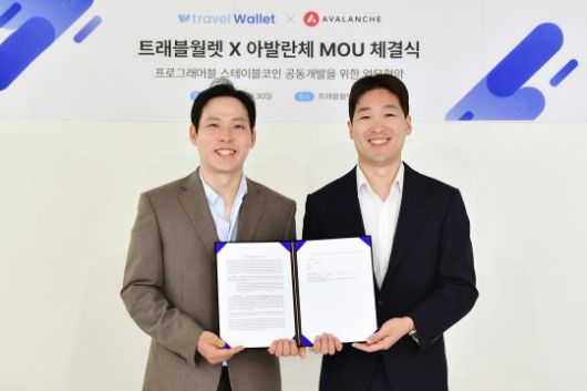 [한국금융신문 김다민 기자] 트래블월렛(대표 김형우)이 글로벌 블록체인 플랫폼 아발란체(Avalanche)와 원화 기반 스테이블코인 및 프로그래머블 스테이블코인(Programmable Stablecoin) 공동 개발을 공식화하는 전략적 업무 협약(MOU)을 체결했다고 1일 밝혔다.