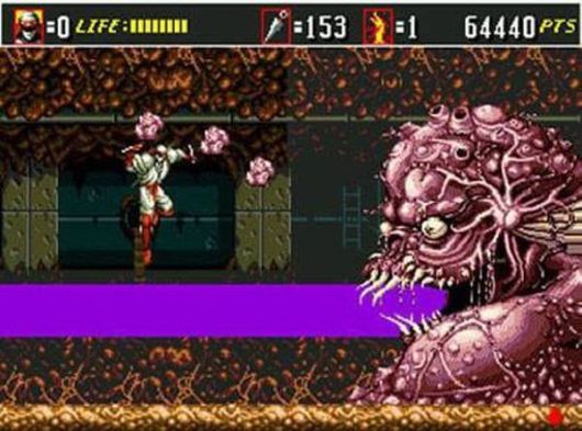 조기자: 그리고 이러한 세계관을 가진, 슬라임은 아니지만 유독 화학 약품 속에서 태어난 듯한 적은 또 있습니다. 바로 메가드라이브 용 '시노비3'에 나오는 대형 보스입니다.