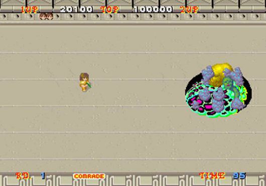 조기자: 이 게임이 등장한 것은 무려 1989년! 파고다 소프트웨어에서 개발하고 마스터 트로닉에서 유통한 이 게임은 세가에서 1987년도에 오락실용으로 내놓은 '에일리언 신드롬'의 벤치마킹 게임이라고 할 수 있습니다.