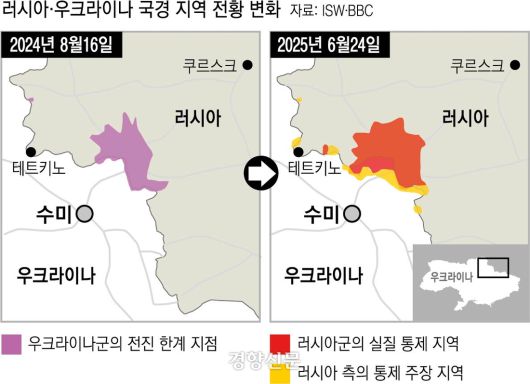 도널드 트럼프 미국 대통령의 재집권 이후 우크라이나 북동부 수미 지역이 러시아 압박 공세의 최전선으로 떠오르고 있다. 트럼프 대통령이 공언한 러시아·우크라이나 간 휴전 협상이 난항을 겪는 가운데 미국의 추가 지원도 불투명해지자 러시아가 대규모 병력을 동원한 총공세에 나섰기 때문이다. 요새화가 미비했던 수미 일대가 집중 공격을 받으면서 우크라이나 내부에서는 방어 체계의 허점을 지적하는 목소리도 커진다.