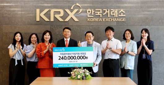 한국거래소는 1일 부산 본사에서 부산지역 자립준비청년의 자립을 돕기 위한 ‘KRX 드림나래‘ 후원금 2조4000억 원을 초록우산 부산지역본부에 전달했다고 밝혔다.