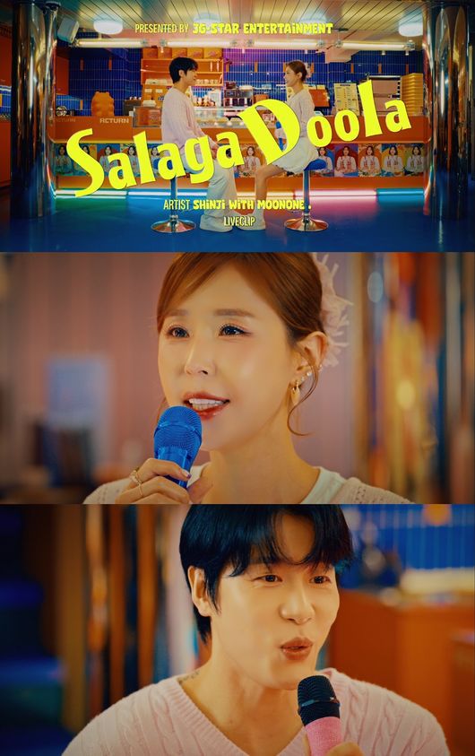 신지는 지난달 30일 오후 6시 공식 SNS 채널을 통해 발라드 가수 문원과 함께한 신곡 ‘샬라카둘라(Salagadoola)’의 라이브 클립 영상을 선보였다.