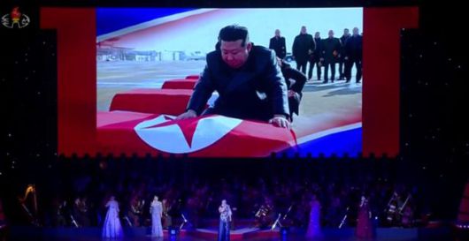 조선중앙TV는 전날 4·25문화회관으로 추정되는 곳에서 진행된 북한 예술인 공연을 방송했는데, 이날 행사에는 올가 류비모바 러시아 문화부 장관 등 러시아 인사가 여럿 참석해 함께 공연을 관람했다. 이들이 관람한 공연의 무대 상단에선 스크린을 통해 김 위원장과 최선희 외무상 등이 침통한 모습으로 관에 인공기를 덮는 모습 등이 여러 차례 노출됐다. 김 위원장이 관을 쓰다듬으며 울먹이는 장면도 포함됐다. 이와 함께 김 위원장이 러시아에 파병된 북한군 특수부대에 공격명령을 하달하는 모습과, 파병된 북한군이 러시아 군대와 기념사진을 촬영한 모습 등도 처음 공개됐다.