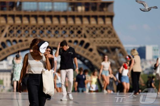 30일(현지시간) 찜통 더위 속 프랑스 수도 에펠탑 앞의 광장을 관광객과 시민들이 지나고 잇다. 2025.6.30 ⓒ AFP=뉴스1 ⓒ News1 이지예 객원기자 |