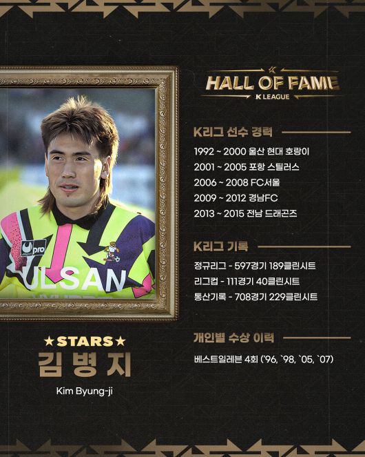 김병지는 1992년 현대 호랑이(현 울산HD)에서 데뷔 후 24년간 K리그에서 활약한 레전드 골키퍼다. 김병지는 컵대회 포함 K리그 통산 708경기에 출전해 무려 229경기에서 클린시트를 기록했다. 김병지는 골키퍼 포지션에도 불구하고 현역 시절 3골을 기록해 '골 넣는 골키퍼'라는 별명을 얻었으며, 울산(1996년, 1998년), 포항(2005년), 서울(2007년) 소속으로 K리그 베스트일레븐에 총 4회 선정됐다.