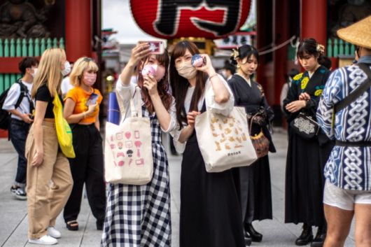 2022년 5월30일 일본 도쿄의 관광 명소인 센소지 사원에서 사람들이 사진을 찍고 있다./AFPBBNews=뉴스1 |