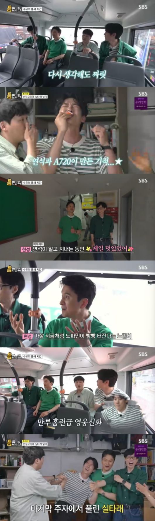 장현성은 "내가 여태까지 평생 살면서 가장 지금처럼 도파민이 팡팡 터진다는 느낌이, 사회인 야구에서 딱 한번 만루홈런을 쳤었다. 20년 전 일인데 그 느낌이 아직도 생생하다. 오늘 연석이가 성공한 것이 딱 그 느낌"이라면서 유연석의 마음을 공감했다.