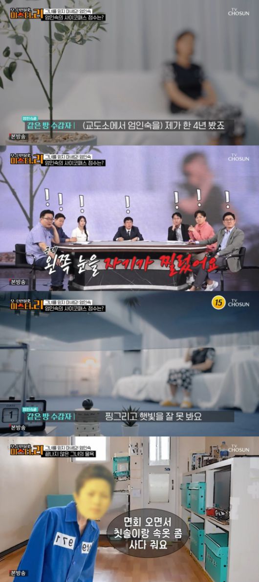 함께 방을 썼다는 수감자 동기는 "(엄인숙이) 엄마 이야기를 가끔 한다. 엄마가 면회 왔다고 한다. 그래서 내가 '아니 눈 찌른 딸을 면회하고 싶나'라고 해버렸다. 하면 안 되는데. 나 같으면 이단 옆차기 날아갈 텐데 참더라"고 말해 눈길을 끌었다.