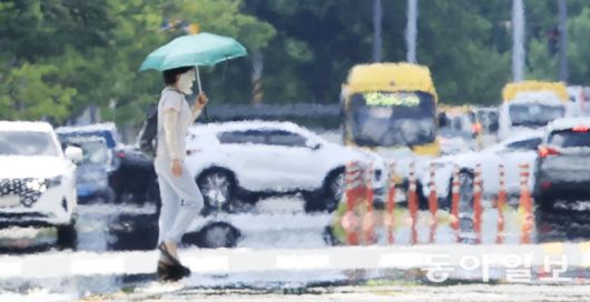 지글지글 달아오른 도로 1일 광주 서구 상무지구 도로에 아지랑이가 피어오르고 있다. 이날 남부지방을 중심으로 폭염경보가 발효되는 등 전국 대부분 지역에 폭염특보가 내려졌다. 폭염경보는 체감온도 기준으로 35도 이상이 이틀 이상 지속되거나 광범위한 지역에서 심각한 피해가 예상될 때 발효된다. 광주=박영철 기자 skyblue@donga.com |