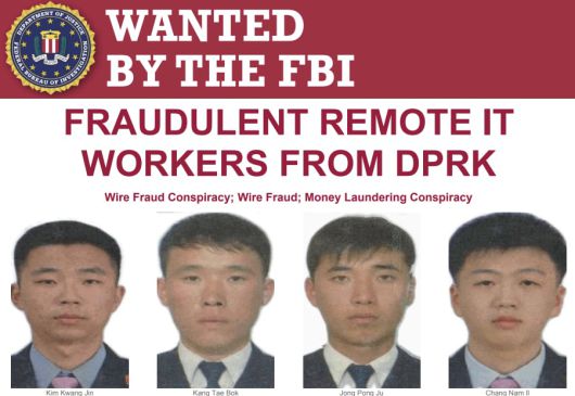 1일 미국 법무부와 월스트리트저널에 따르면 연방 정부는 이 사건에 북한이 관계돼 있다고 보고 연루된 북한인 네 명에 대해 500만달러의 포상금을 걸고 수배에 나섰다. 법무부에 따르면 수배 대상 북한인은 김관진(27), 강태복(28), 정봉주(28), 장남일(26)이다. 이들은 2021년부터 지난해 10월까지 80여 명의 미국인 신원을 도용해 100개 이상의 미국 기업에 위장 취업했다. 피해 기업 중에는 미 경제 전문지 포천이 매년 발표하는 500대 기업인 ‘포천 500’에 포함된 곳도 있다.