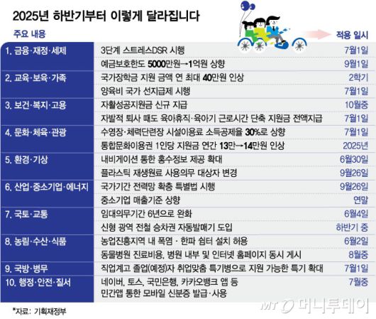 기획재정부는 1일 이 같은 내용을 포함해 올해 하반기부터 달라지는 제도와 법규 사항 등을 정리한 '2025년 하반기부터 이렇게 달라집니다' 책자를 발간했다.
