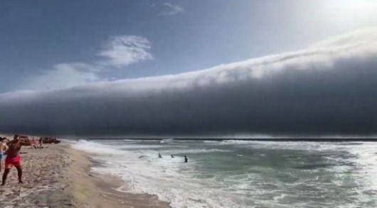 앞서 지난달 29일 사회관계망서비스(SNS)에는 당시 해변의 모습이 담긴 영상이 올라왔다. 엄청난 구름 덩어리가 바다에서 해변 쪽으로 밀려오자 주말을 맞아 해변을 찾은 해수욕객들이 순간 쓰나미로 착각해 당황하는 모습이다. 한 누리꾼은 당시 촬영한 사진을 공유하며 "이 구름을 본 건 정말 믿기 어려웠다. 영화 속 쓰나미처럼 느껴졌다"고 적었다. 이 구름은 영어권에서는 롤 구름이라 부르며 우리나라에서는 두루마리구름이라 부른다. 기후 전문가 마리오 마르케스는 APTN에 이 같은 모양의 구름이 형성되려면 바람과 온도, 습도의 조건이 모두 충족돼야 한다고 설명했다.