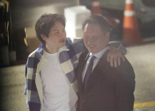 오른쪽부터 최태원 SK 회장과 그의 아들 최인근씨. 지난해 6월 한 인터넷 커뮤니티를 통해 최 회장 부자가 서울 신사동 한 식당 앞에서 친구처럼 어깨동무를 한 사진이 올라와 화제가 됐다. 인터넷 커뮤니티 |