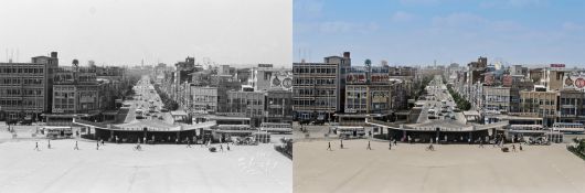 1970년대 대전역 옥상에서 본 도청 방향 거리풍경 복원 전,후 사진 / 대전시 제공 |