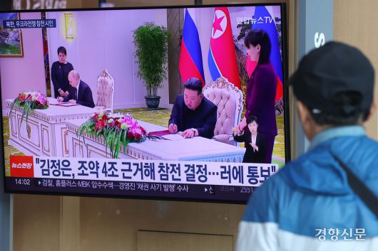 북한이 러시아 파병을 공식 인정한 지난 4월28일 서울 용산구 서울역 대합실 티비에 관련 뉴스가 나오고 있다. 한수빈 기자 |