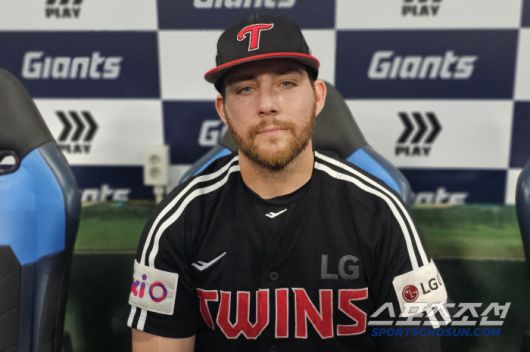 LG 오스틴 딘이 1일 롯데전이 끝난 뒤 힘든 표정으로 인터뷰를 하고 있다. 부산=권인하 기자