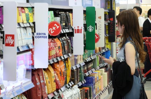 지난달 9일 서울 시내 한 대형마트에서 소비자들이 커피를 고르고 있다. 서울=뉴시스 |