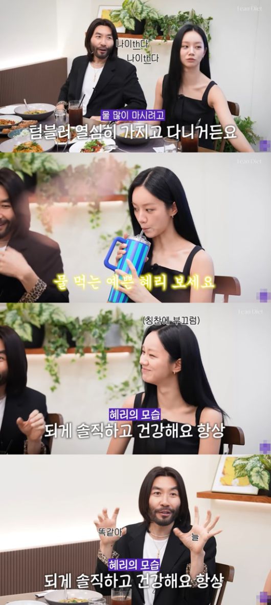 또 텀블러를 항상 갖고 다니며 틈틈이 물을 마신다고 고백했고, 혜리와 함께 모델로 활동 중인 노홍철도 혜리를 향해 "굉장히 솔직하고 건강하지 않나. 늘 밝은 모습이다"라며 칭찬을 건넸다.