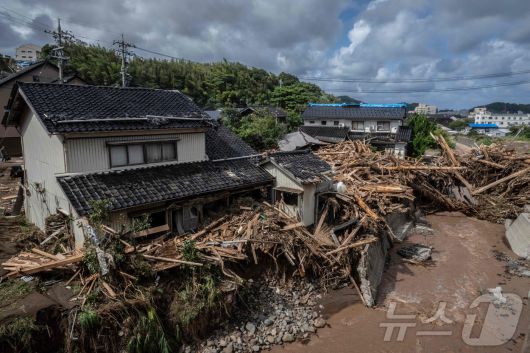 2024년 9월 23일 일본 이시카와현 와지마시 한 주택가에 폭우로 쓰카다 강이 범람해 떠내려온 잔해가 쌓여 있다. (자료사진) 2024.09.23 ⓒ AFP=뉴스1 ⓒ News1 김지완 기자 |