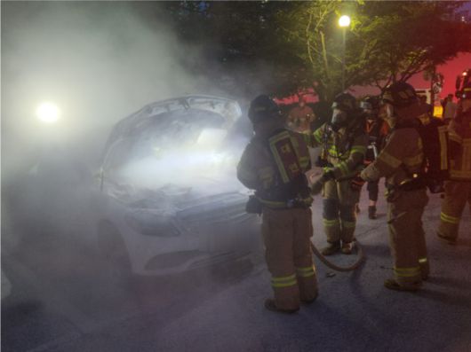 2일 부산소방재난본부에 따르면, 전날 오후 7시 55분쯤 부산 수영구 한 아파트 앞 야외주차장에 세워둔 벤츠 차량에서 불이 나 30분 만에 꺼졌다.