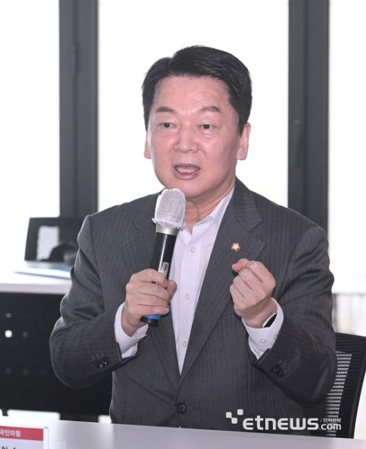 최수진 국민의힘 국회의원과 전자신문이 공동 주최한 '바이오헬스 디지털 혁신포럼 현장 간담회'가 24일 서울 송파구 비워크서울에서 열렸다. 안철수 국민의힘 의원이 축사를 하고 있다. 박지호기자 jihopress@etnews.com |