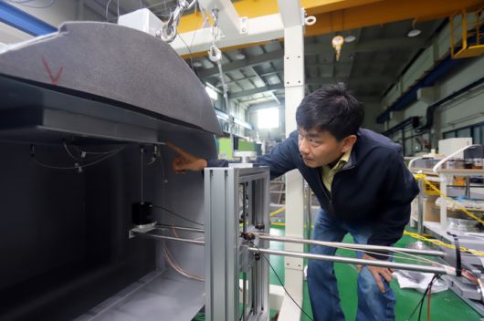 이성현 기계연 가상공학연구센터 책임연구원이 방사소음 예측 알고리즘 시험 장비를 살펴보고 있다. |