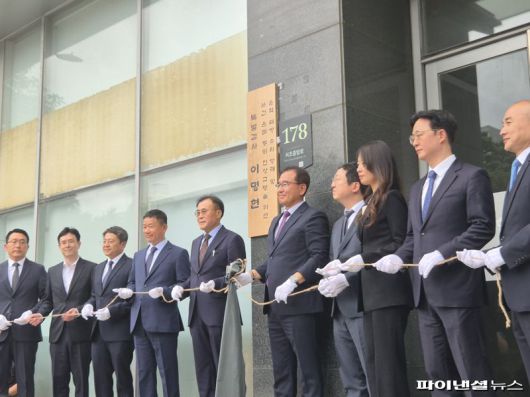 순직 해병대원에 대한 수사를 담당하는 이명현 특별검사팀이 2일 오전 10시 서울 서초구 특검사무실 앞에서 현판식을 갖고 있다./사진=최은솔 기자 |
