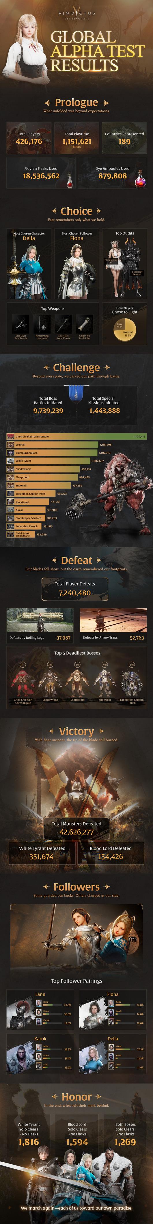 지난 6월 9일부터 17일까지 진행된 이번 테스트에는 전 세계 189개국에서 총 42만 6176명의 플레이어가 참여했다. 스타일리시한 전투 시스템, 완성도 높은 그래픽, 섬세한 커스터마이징 요소로 뜨거운 관심을 모았다.