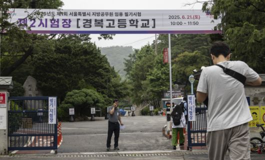 2025년도 지방공무원 9급 공채 필기시험이 열린 6월 22일 수험생들이 서울 종로구 경복고등학교에 마련된 고사장으로 이동하고 있다. /연합뉴스 |