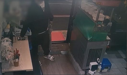 음식점에서 가게 주인의 휴대전화를 훔치는 A씨. 대전동부경찰서 제공 |