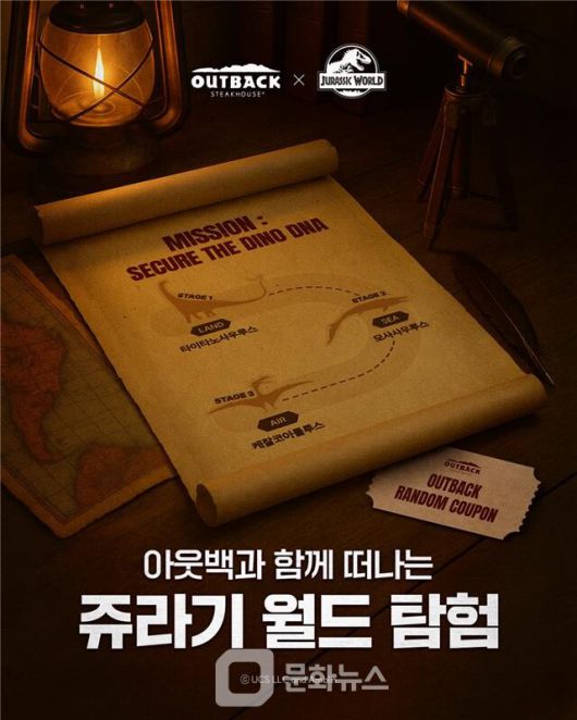 아웃백 스테이크하우스(이하 아웃백)가 영화 '쥬라기월드'와 협업한 온라인 이벤트 '아웃백과 함께 떠나는 쥬라기월드 어드벤처'를 7월 2일부터 8월 3일까지 약 한 달간 진행한다.